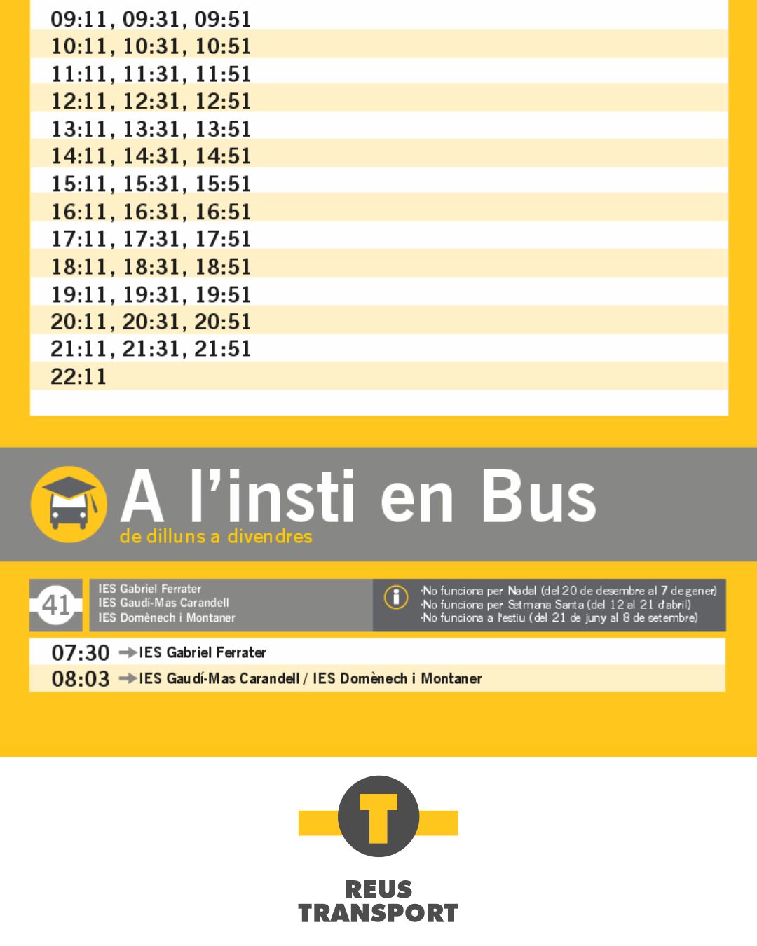 Diseñando desde 2000 la señalización de la información del servicio de transporte público de Reus. Creación de contenidos para web y redes sociales. Diseño gráfico para campañas promocionales.